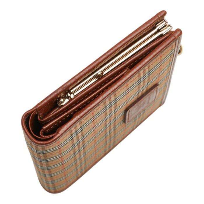 バーバリー ノバチェック 二つ折り財布 ブラウン キャンバス レザー レディース BURBERRY 【中古】