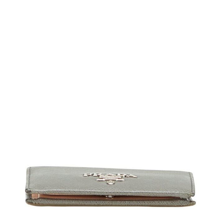 プラダ ロゴ 二つ折り財布 グレー レザー レディース PRADA 【中古】