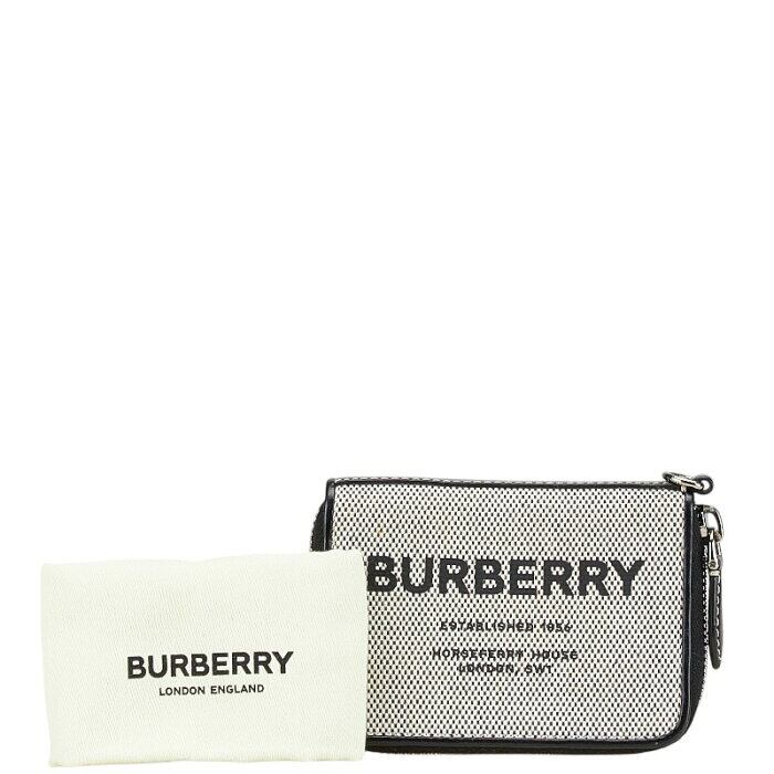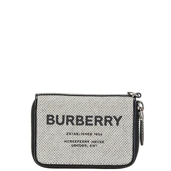 バーバリー ホースフェリー プリント コインケース カードケース ブラック ベージュ キャンバス レザー レディース BURBERRY 【中古】