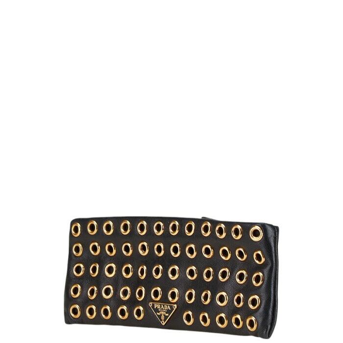 プラダ 三角ロゴプレート ペンケース ポーチ ブラック レザー レディース PRADA 【中古】