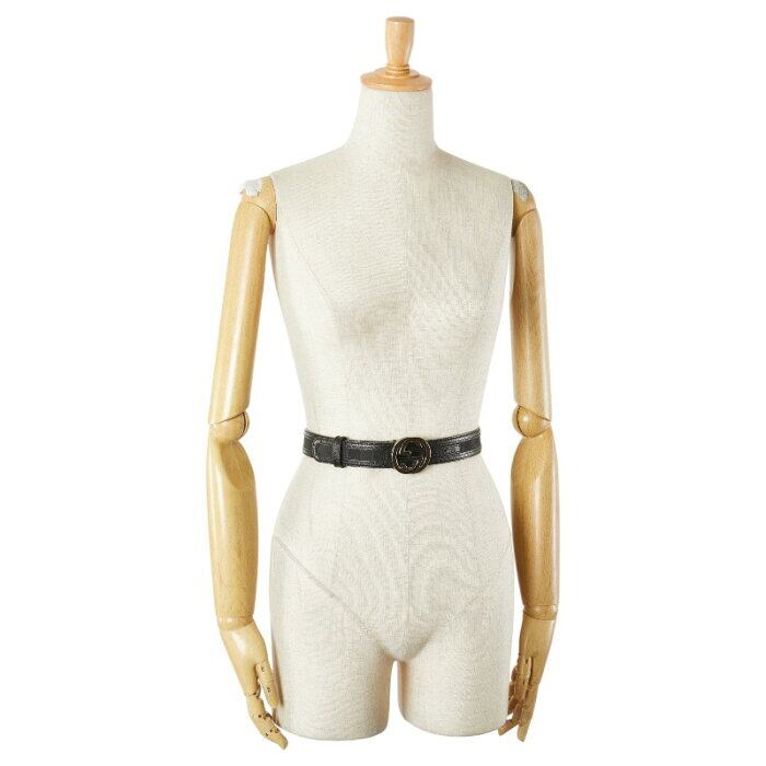 グッチ GGキャンバス インターロッキングG ベルト 80.32 114874 ブラック シルバー キャンバス レザー レディース GUCCI 【中古】