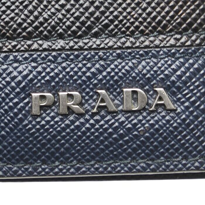 プラダ 二つ折り財布 ブラック ネイビー サフィアーノレザー メンズ PRADA 【中古】