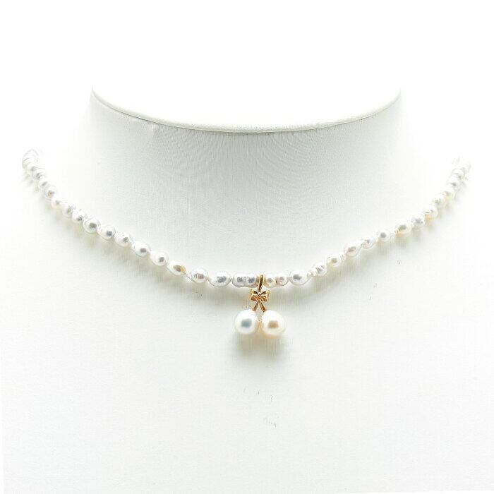 リボン モチーフ ネックレス シルバー ゴールド パール K18 ゴールド レディース 【中古】