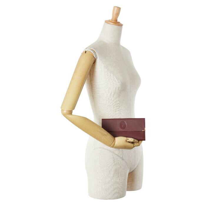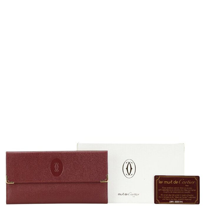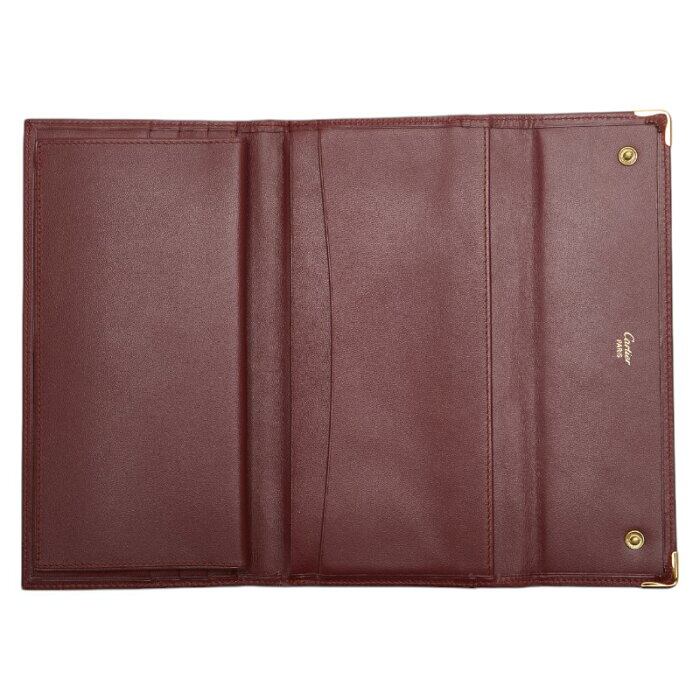 カルティエ マストライン がま口 長財布 ワインレッド レザー レディース CARTIER 【中古】
