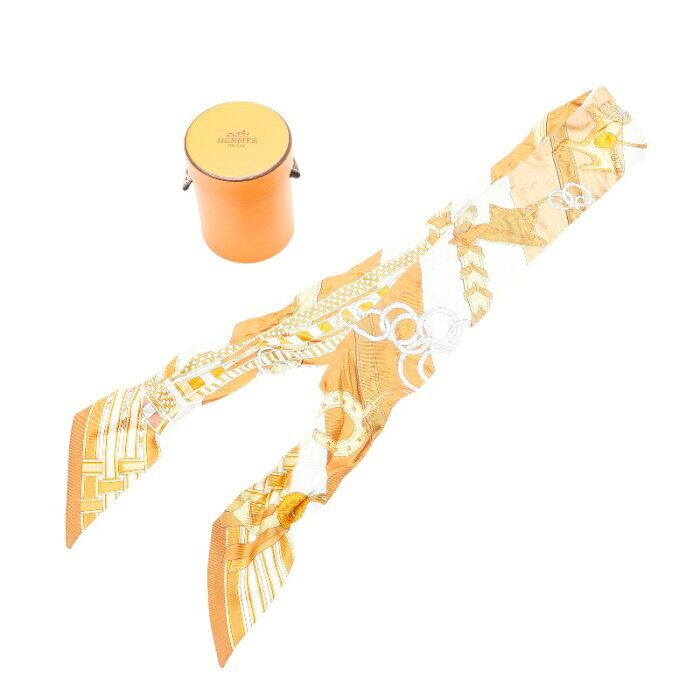 エルメス ツイリー BRIDES ET GRIS GRIS 馬勒とチャーム スカーフ キャラメル ホワイト ブロンズ シルク レディース HERMES 【中古】