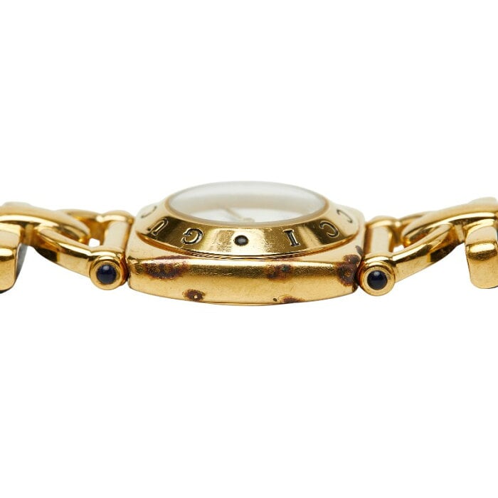 グッチ ホースビット ベルト(社外品) 腕時計 6300L クオーツ ホワイト文字盤 メッキ レザー レディース GUCCI 【中古】