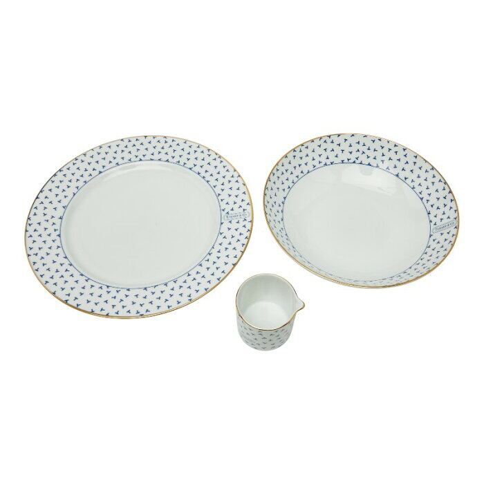 ティファニー ダンシングT ディナープレート セット プレート ボウル クリーマー ホワイト ネイビー ゴールド 陶磁器 レディース TIFFANY&Co. 【中古】