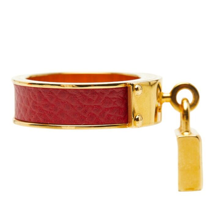 エルメス ケリー カデナ モチーフ スカーフリング ゴールド レッド メッキ レザー レディース HERMES 【中古】