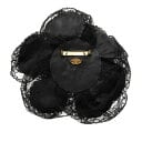 シャネル カメリア コサージュ ブローチ ブラック レース メッキ レディース CHANEL 【中古】
