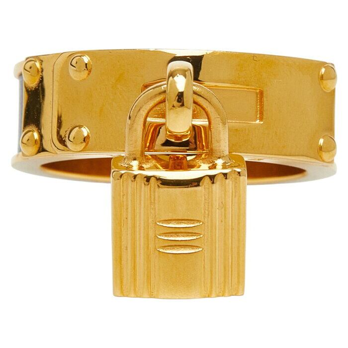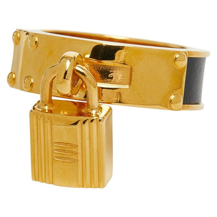 エルメス ケリー カデナ モチーフ スカーフリング ゴールド ブラック メッキ レザー レディース HERMES 【中古】