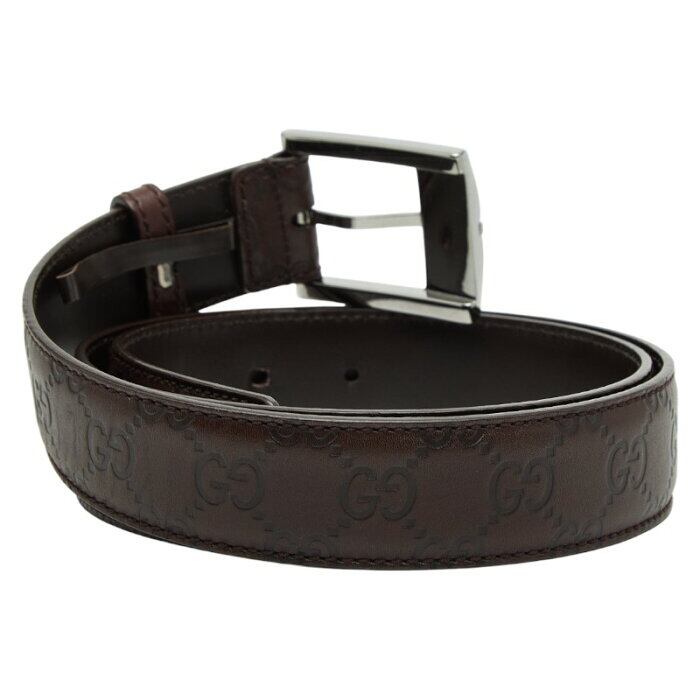 グッチ グッチシマ ベルト サイズ95・38 146413 ダークブラウン シルバー レザー メンズ GUCCI 【中古】