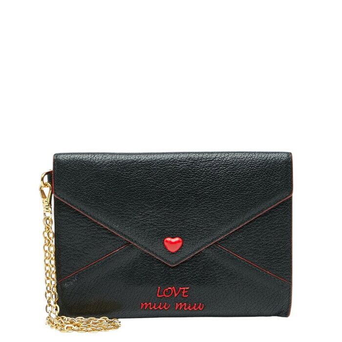 ミュウミュウ チェーンストラップ カードケース パスケース 5MF001 ブラック レッド レザー レディース MIUMIU 【中古】
