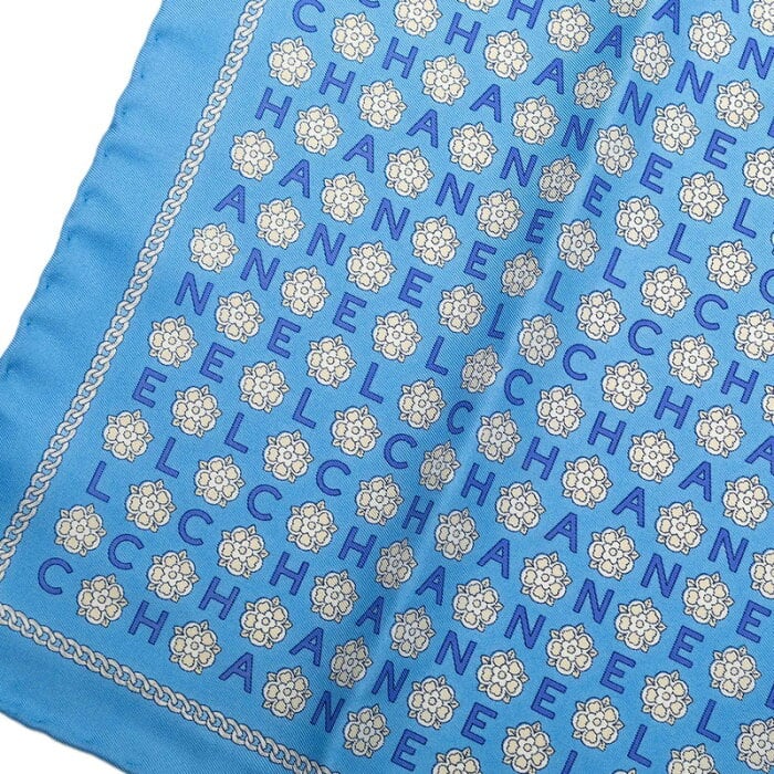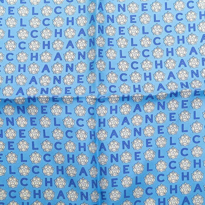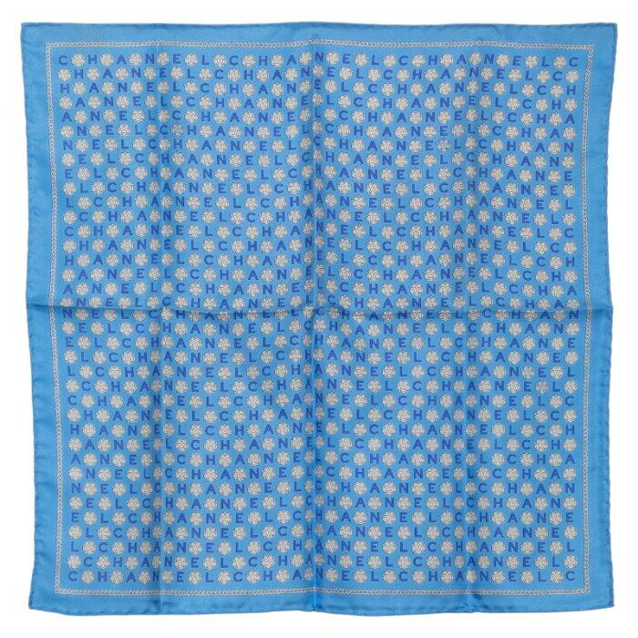 シャネル ロゴ ハンカチ スカーフ ブルー ホワイト シルク レディース CHANEL 【中古】