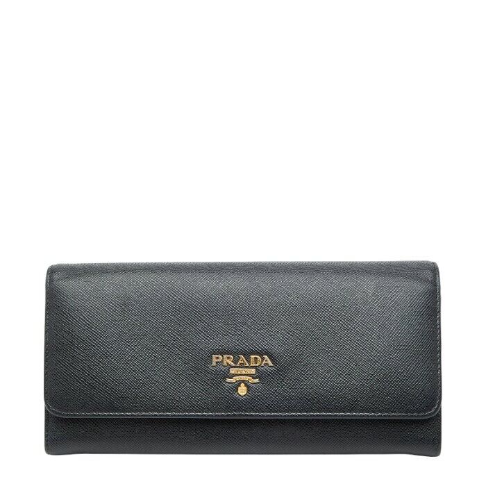 プラダ ロゴ 長財布 1M1132 ブラック ピンク サフィアーノレザー レディース PRADA 【中古】