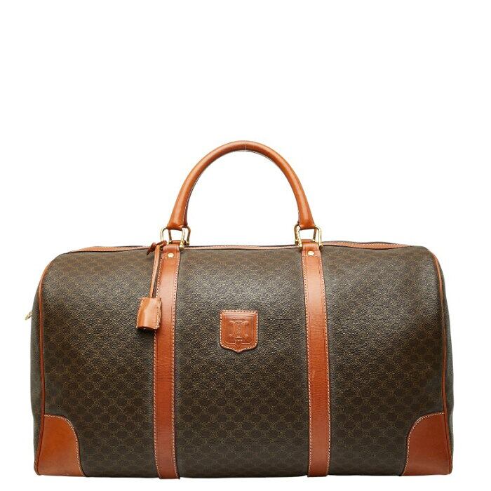 セリーヌ マカダム ボストンバッグ トラベルバッグ ブラウン PVC レザー レディース CELINE 【中古】