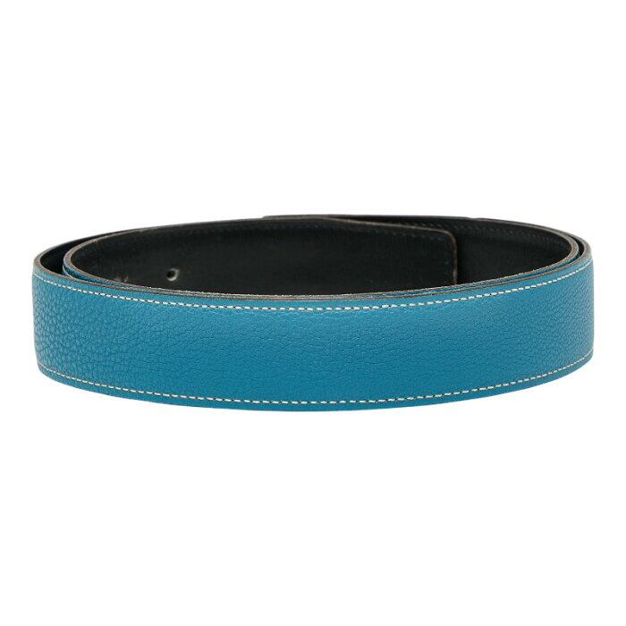 エルメス コンスタンス Hベルト リバーシブル ベルト サイズ:90 バックルなし ブラック ライトブルー ボックスカーフ トゴ レディース HERMES 【中古】