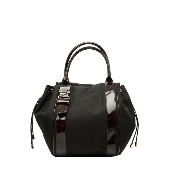 サルヴァトーレフェラガモ ヴァラリボン ハンドバッグ トートバッグ ブラック ブラウン ナイロン パテントレザー レディース Salvatore Ferragamo 【中古】