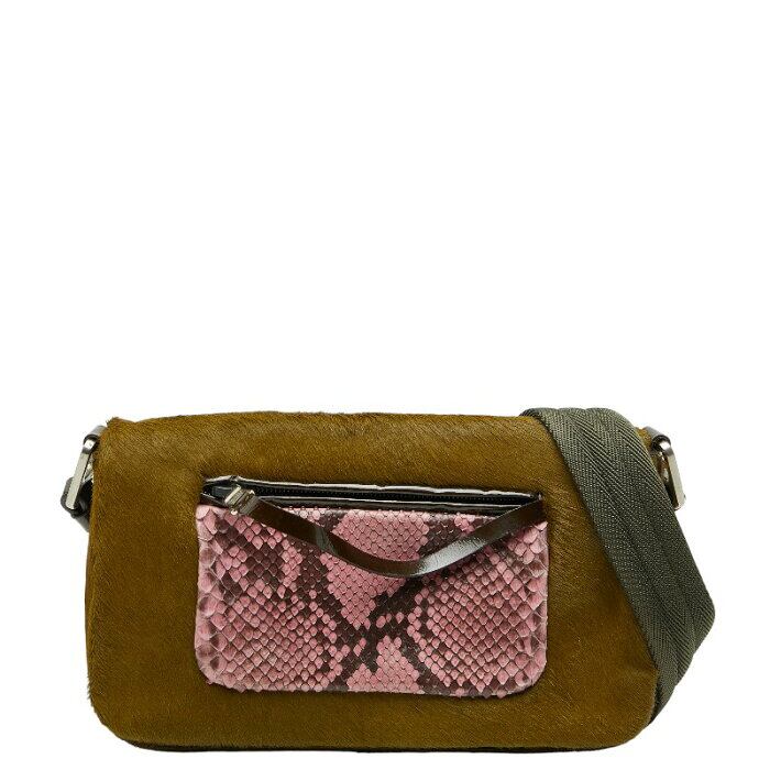 プラダ パイソン ショルダーバッグ カーキグリーン ピンク ハラコ レザー レディース PRADA 【中古】