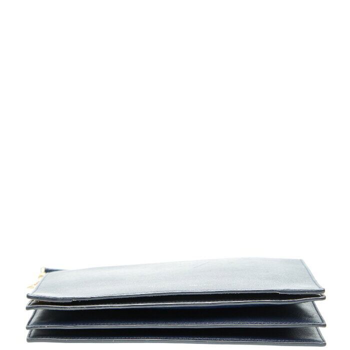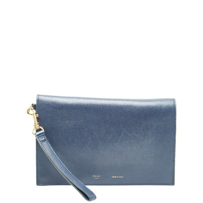 セリーヌ ロゴ セカンドバッグ クラッチバッグ ネイビー レザー レディース CELINE 【中古】
