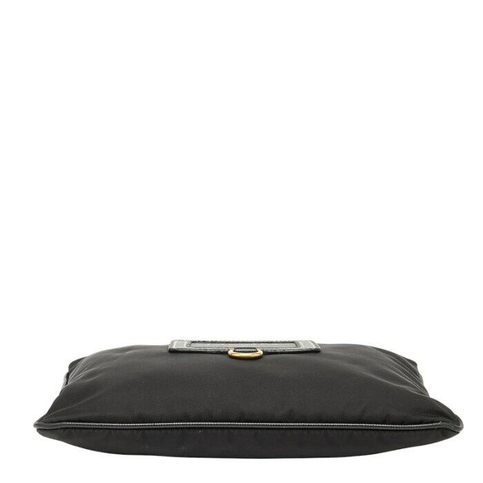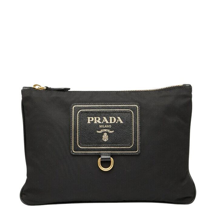 プラダ ロゴ ポーチ ブラック ゴールド ナイロン レザー レディース PRADA 【中古】