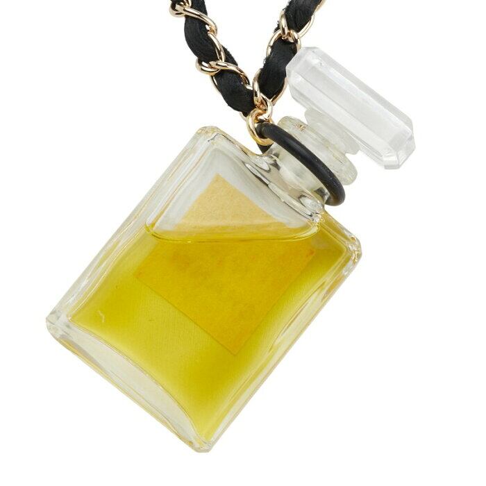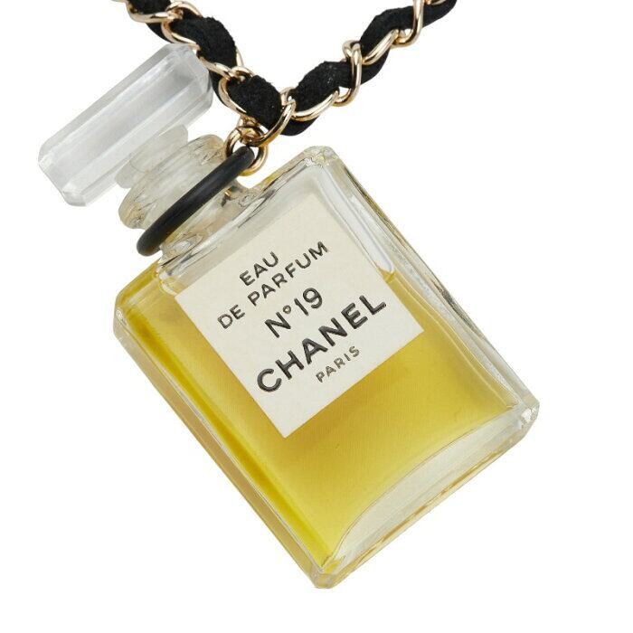 シャネル No19 香水 オードパルファム ネックレス ゴールド ブラック メッキ レザー レディース CHANEL 【中古】