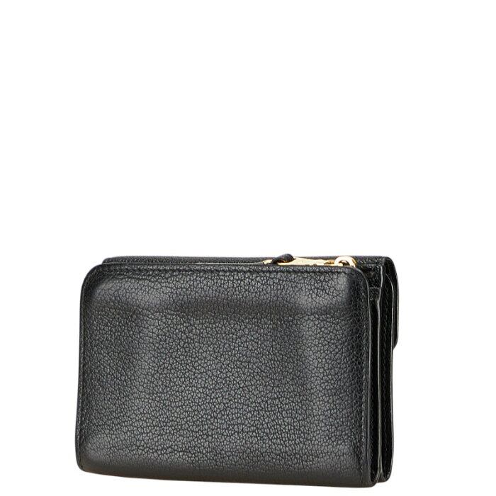 ミュウミュウ ロゴ 二つ折り財布 ブラック レザー レディース MIUMIU 【中古】