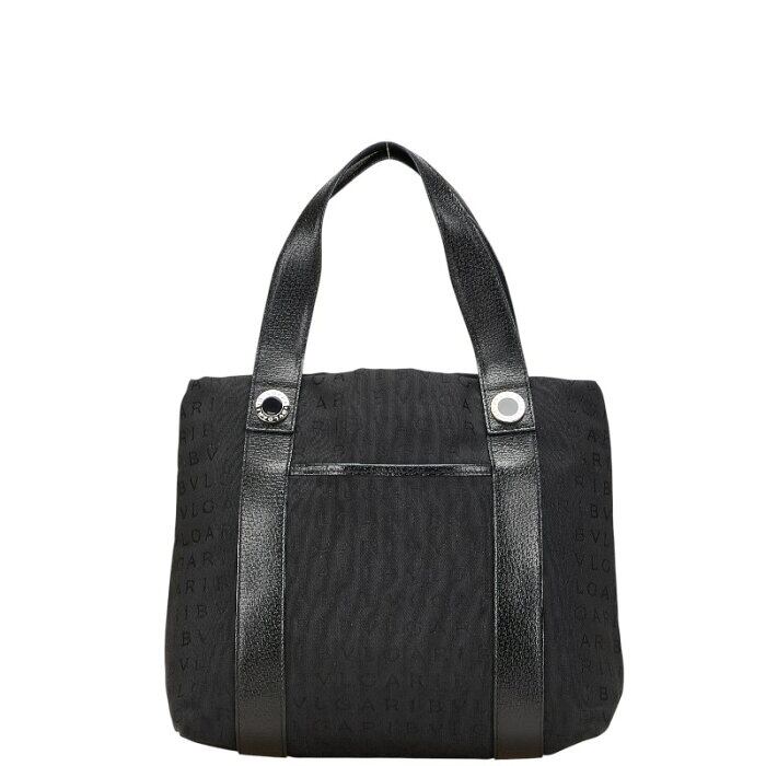 ブルガリ ロゴマニア トートバッグ ハンドバッグ ブラック キャンバス レザー レディース BVLGARI 【中古】