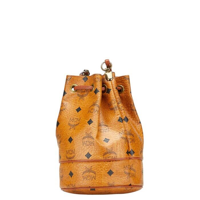 エム シー エム ヴィセトス ロゴグラム ショルダーバッグ 巾着 ブラウン PVC レザー レディース MCM 【中古】