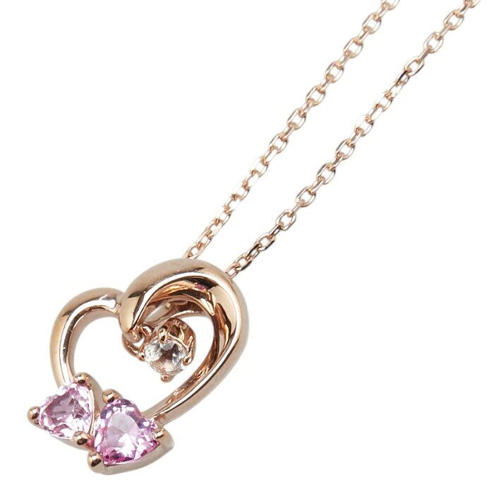ヨンドシー K10PG ピンクゴールド 合成サファイア トパーズ ハート モチーフ ペンダントネックレス レディース 4℃ 【中古】