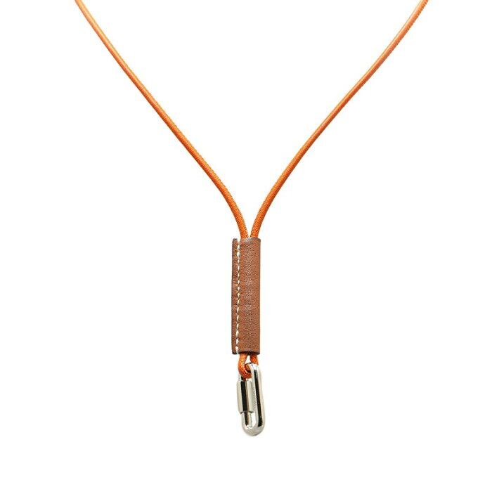 エルメス キュリオジテ ストラップ ネックストラップ オレンジ ブラウン シルバー ヴォースイフト メタル レディース HERMES 【中古】