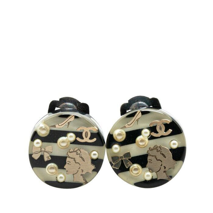 シャネル イヤリング ブラック ホワイト プラスチック レディース CHANEL 【中古】