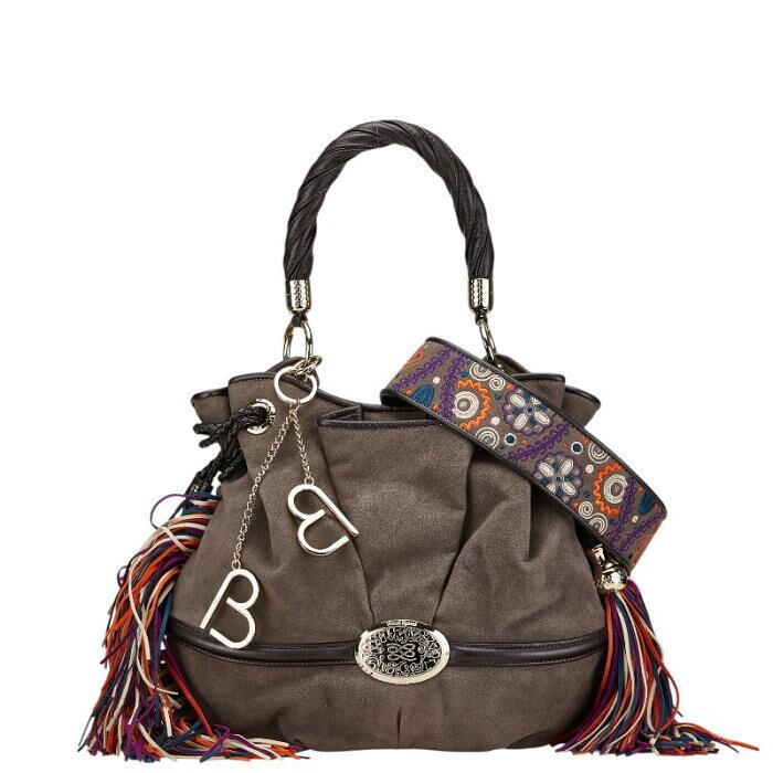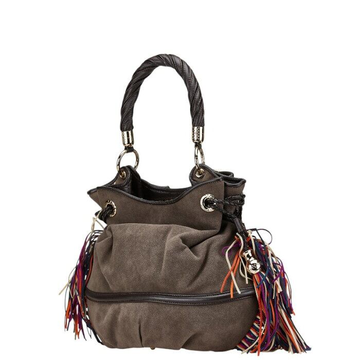 ランセル ボヘミアン刺繍 ハンドバッグ ショルダーバッグ 2WAY ブラウン マルチカラー スウェード フェイクレザー レディース LANCEL 【中古】