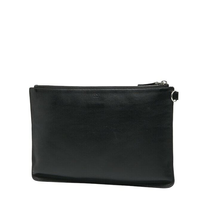 フェンディ モンスター バグズアイ クラッチバッグ セカンドバッグ ポーチ 7N0078 ブラック レザー レディース FENDI 【中古】