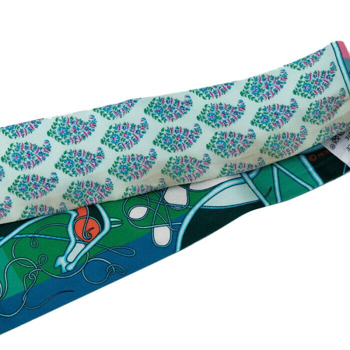 エルメス ツイリー COUP DE FOUET AU BLOC 鞭 スカーフ グリーン ブルー マルチカラー シルク レディース HERMES 【中古】