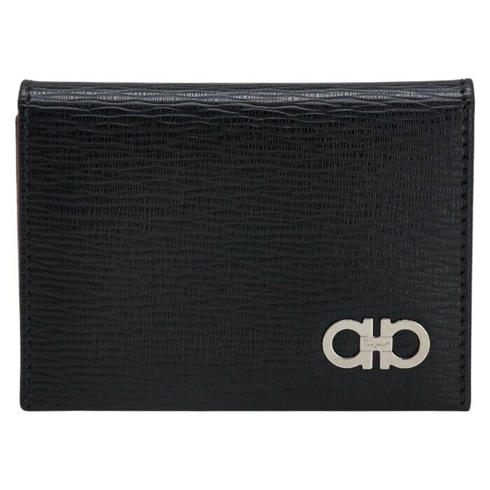 サルヴァトーレフェラガモ ガンチーニ パスケース カードケース IV-66A062 ブラック レザー メンズ Salvatore Ferragamo 【中古】