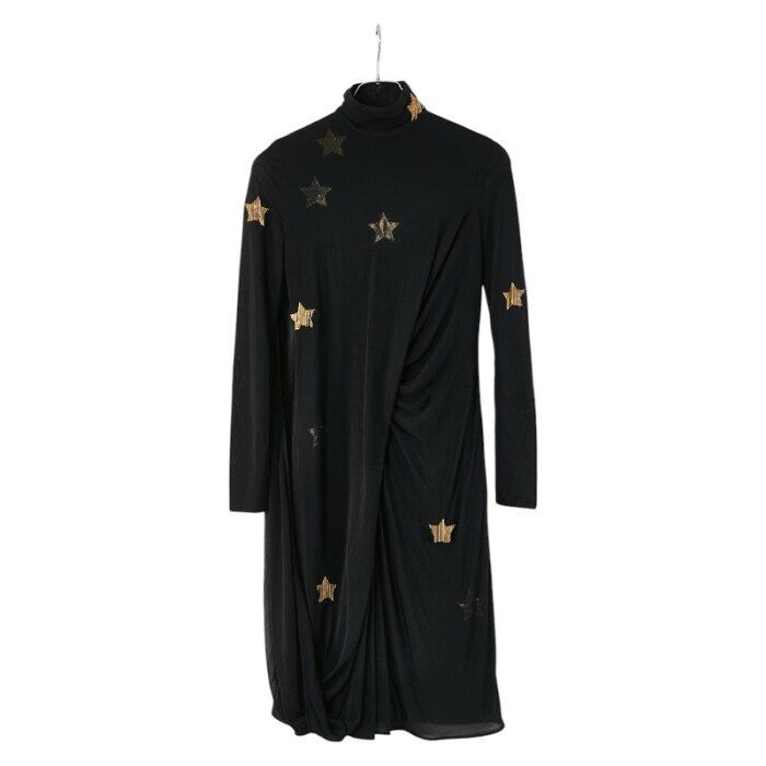 バーバリー 星 スター フリンジ ドレス ワンピース ブラック ゴールド レーヨン シルク レディース BURBERRY 【中古】