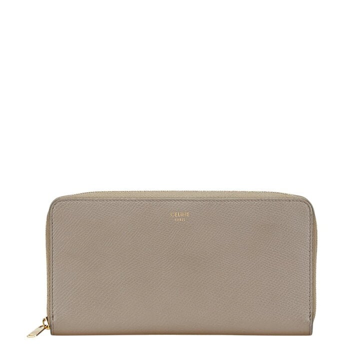セリーヌ ラウンドファスナー 長財布 グレージュ ベージュ レザー レディース CELINE 【中古】