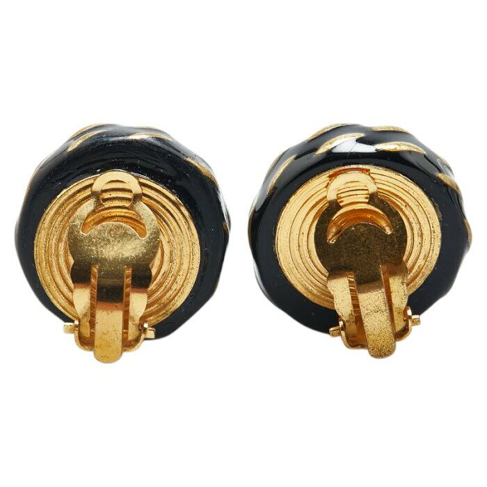 シャネル ヴィンテージ ココマーク ラウンド イヤリング ブラック ゴールド メッキ レディース CHANEL 【中古】