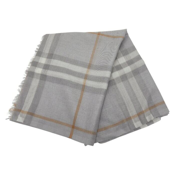 バーバリー チェック 大判 ストール グレー ウール シルク レディース BURBERRY 【中古】