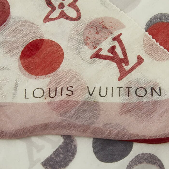 ルイ ヴィトン モノグラム ドット スカーフ ホワイト マルチカラー コットン シルク レディース LOUIS VUITTON 【中古】
