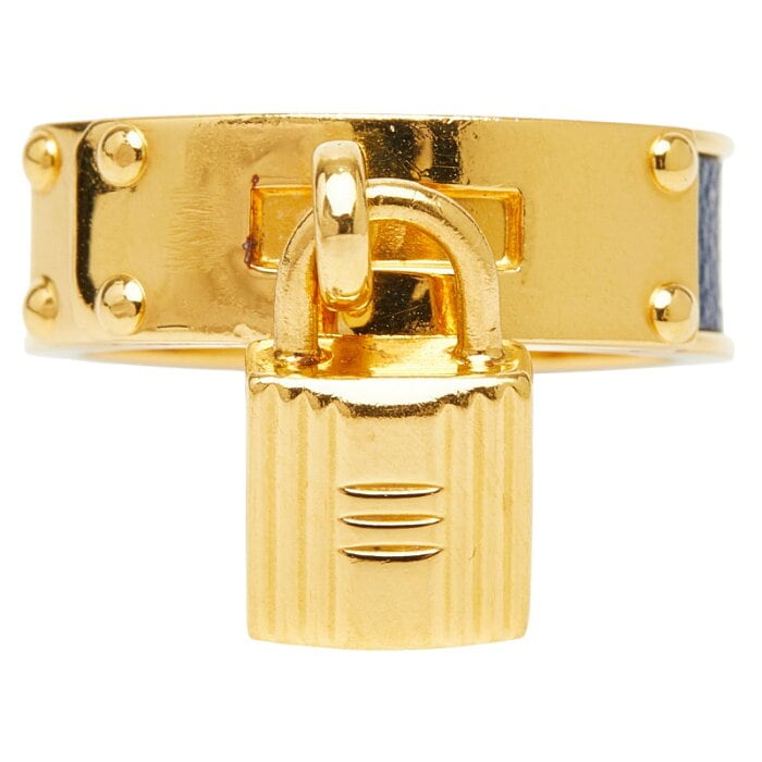 エルメス ケリー カデナ モチーフ スカーフリング ゴールド ブルー メッキ レザー レディース HERMES 【中古】