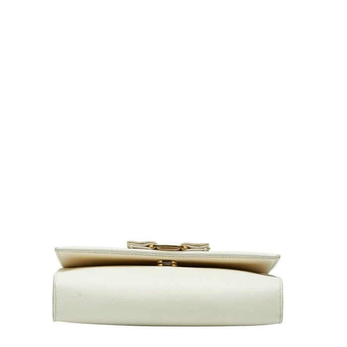 サルヴァトーレフェラガモ ヴァラ リボン チェーン ショルダーバッグ AU-22 B558 ホワイト オフホワイト レザー レディース Salvatore Ferragamo 【中古】