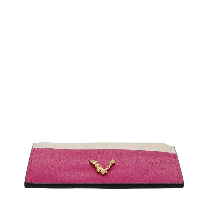 ヴェルサーチェ ヴィルトゥス カードケース コインケース ピンク レザー レディース VERSACE 【中古】