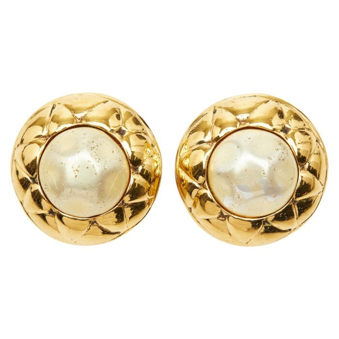 シャネル マトラッセ パール ラウンド イヤリング ゴールド メッキ フェイクパール レディース CHANEL 【中古】
