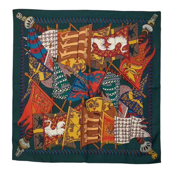 エルメス カレ90 Etendards et Bonnieres 旗 スカーフ グリーン マルチカラー シルク レディース HERMES 【中古】