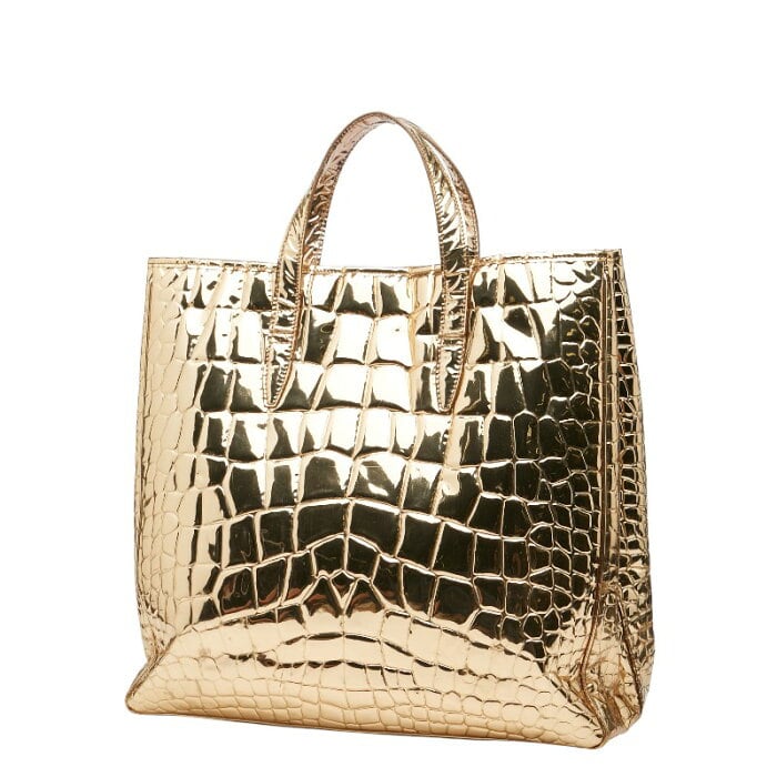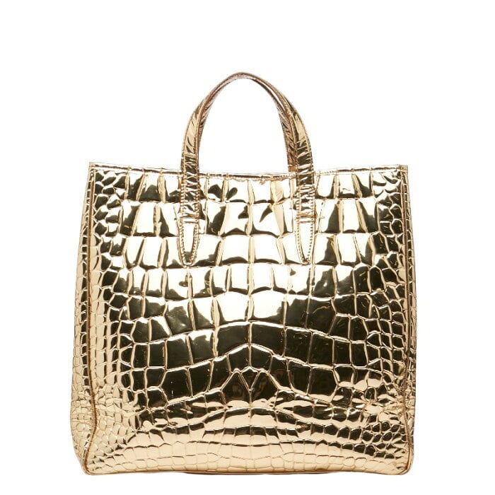 サンローラン クロコダイル型押し トートバッグ ゴールド パテントレザー レディース SAINT LAURENT 【中古】