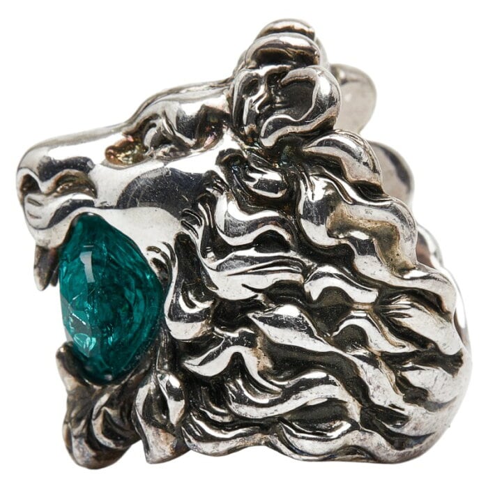 グッチ ライオンヘッド カラーストーン リング 指輪 #52 シルバー グリーン メタル レディース GUCCI 【中古】