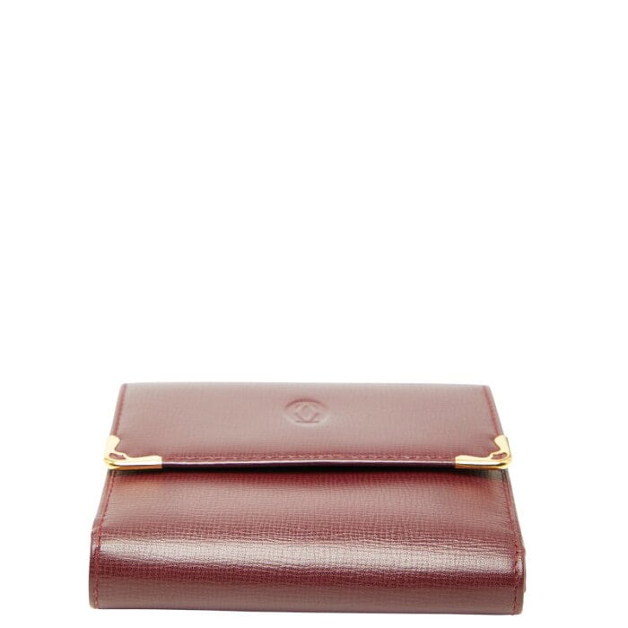 カルティエ マストライン 三つ折り財布 ワインレッド ボルドー レザー レディース CARTIER 【中古】