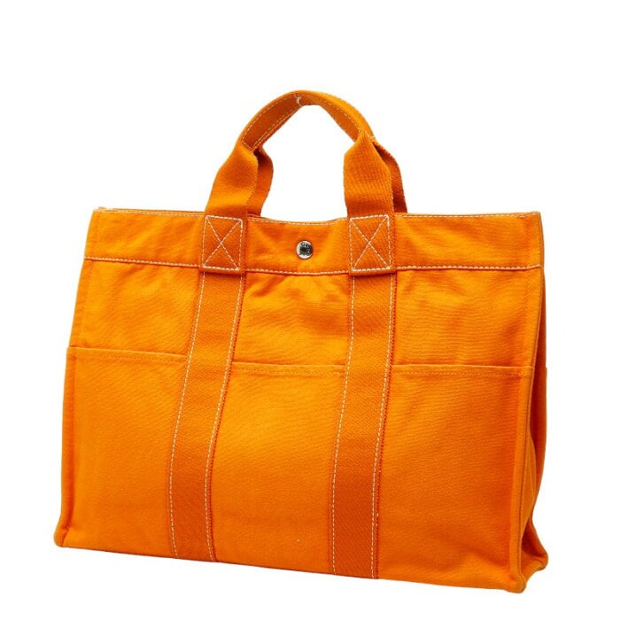 エルメス ドーヴィルMM トートバッグ オレンジ キャンバス レディース HERMES 【中古】