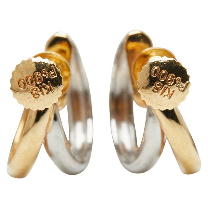 K18YG イエローゴールド Pt900 プラチナ ハーフコンビ イヤリング レディース 【中古】